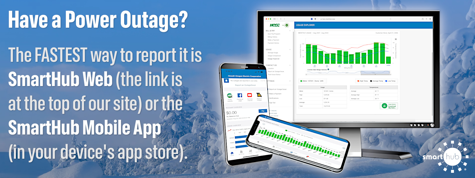 The word of the weekend is COLD! Today is the best day to make final preparations and be ready to stay indoors this weekend. HOEC is preparing and has a dispatcher available 24/7 to answer calls and take reports. The SmartHub app on your phone or our website is the best way to report outages. Download it now from your app store. Stay warm and be weather aware!