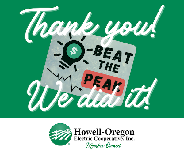 Thank you for your efforts to conserve energy and help us avoid a peak. Our numbers now are showing that we stayed below the highest peak numbers of the past years. With temperatures hitting record lows, and staying there for multiple days, that was no small feat!